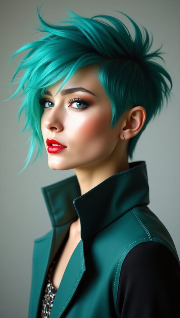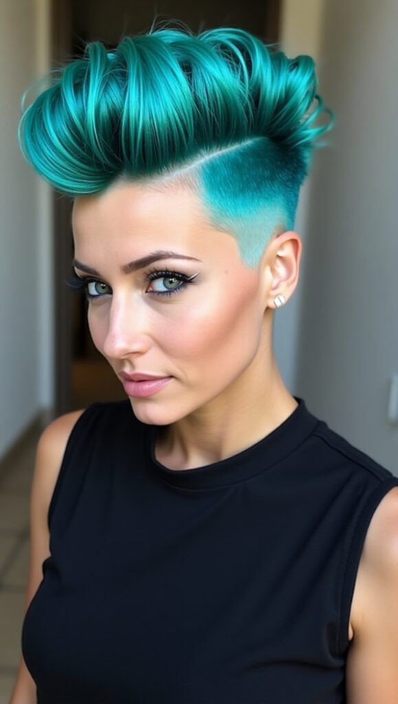 - Description: A vibrant teal Pompadour with faded sides, offering a unique, high-energy look.